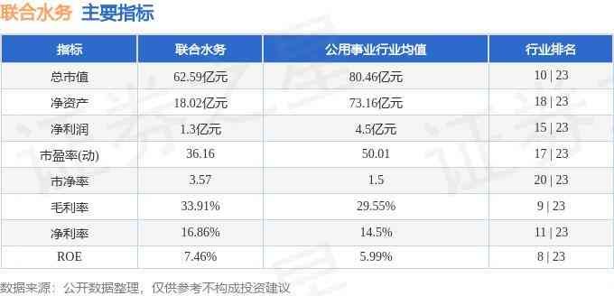 联合水务2024年三季报显示,公司主营收入7.91亿元,同比下降4.55%;归母净利润1.3亿元,同比上升20.97%;扣非净利润7543.99万元,同比下降16.66%;其中2024年第三季度,公司单季度主营收入2.89亿元,同比上升1.83%;单季度归母净利润4676.47万元,同比上升13.75%;单季度扣非净利润2618.16万元,同比下降26.69%;负债率51.04%,投资收益-145.94万元,财务费用2757.09万元,毛利率33.91%。联合水务(603291)主营业务:自来水生产与供应、污水处理与资源化利用、河湖流域水治理和水生态修复等水环境治理业务。
