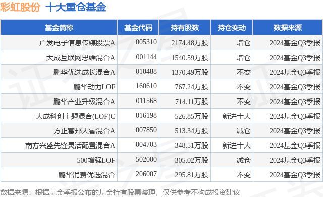 根据2024基金Q3季报公募基金重仓股数据,重仓该股的公募基金共33家,其中持有数量最多的公募基金为广发电子信息传媒股票A。广发电子信息传媒股票A目前规模为19.82亿元,最新净值2.1156(1月13日),较上一交易日上涨0.04%,近一年上涨11.13%。该公募基金现任基金经理为冯骋。
