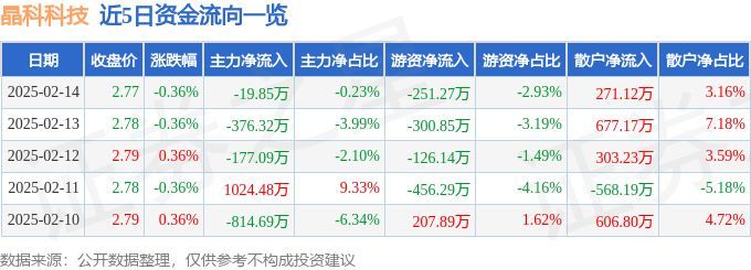2月14日的资金流向数据方面,主力资金净流出19.85万元,占总成交额0.23%,游资资金净流出251.27万元,占总成交额2.93%,散户资金净流入271.12万元,占总成交额3.16%。