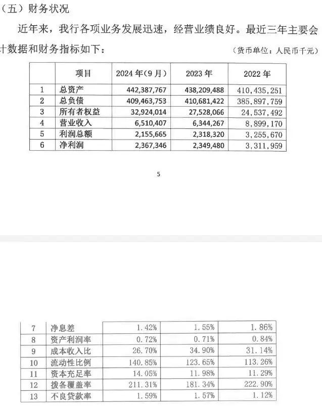从财务数据来看,截至2024年9月30日,全行资产总额4423.88亿元,较年初增长0.95%;发放贷款和垫款2395.32亿元,增长5.19%;吸收存款3016.08亿元。
