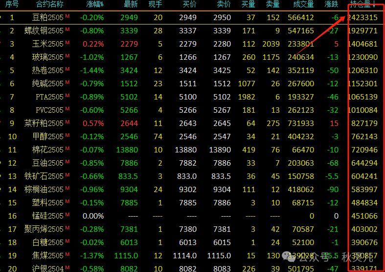 今天说说豆粕,豆粕当前持仓量稳稳的第一。