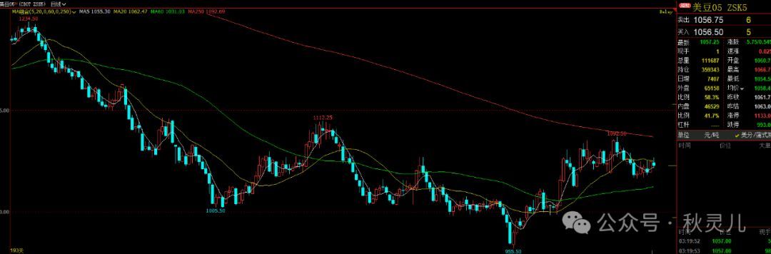 我们因为大豆有86%依赖进口,豆粕的定价权其实是在国外的。之前是美国大豆那边,现在有部分转移到巴西,巴西占比已逐步扩大,现在超过美国了。但是漂亮国的影响力那可不能小瞧,所以呢,做豆粕,CBOT大豆是一定要看的。有人看CBOT豆粕,我们进口豆粕很少的,主要是进口大豆来自已加工,因为大豆容易储存和运输。