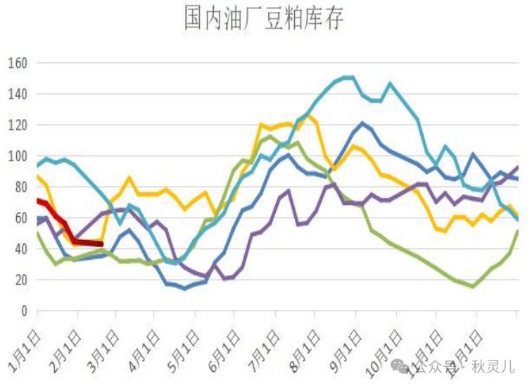 与去年同期相比,豆粕的周度库存减少23.09万吨,减少35%。