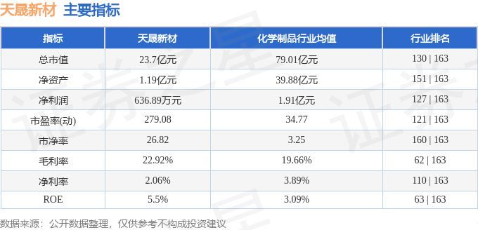 天晟新材2024年三季报显示,公司主营收入4.01亿元,同比上升3.13%;归母净利润636.89万元,同比上升117.84%;扣非净利润603.0万元,同比上升115.74%;其中2024年第三季度,公司单季度主营收入1.49亿元,同比上升4.02%;单季度归母净利润260.82万元,同比上升118.34%;单季度扣非净利润365.68万元,同比上升123.7%;负债率87.41%,投资收益54.51万元,财务费用2008.09万元,毛利率22.92%。天晟新材(300169)主营业务:主要从事高分子发泡材料的研发、生产与销售。