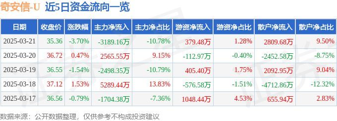 股票行情快报:奇安信(688561)3月21日主力资金净卖出3189.16万元