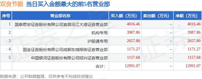 1月15日双良节能(600481)龙虎榜数据:游资流沙河上榜