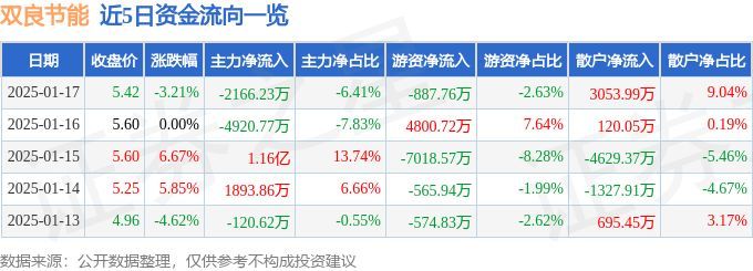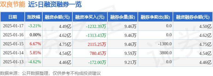 证券之星消息,截至2025年1月17日收盘,双良节能(600481)报收于5.42元,下跌3.21%,换手率3.32%,成交量62.14万手,成交额3.38亿元。