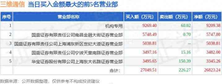 3月21日三维通信(002115)龙虎榜数据:机构净买入9209.38万元