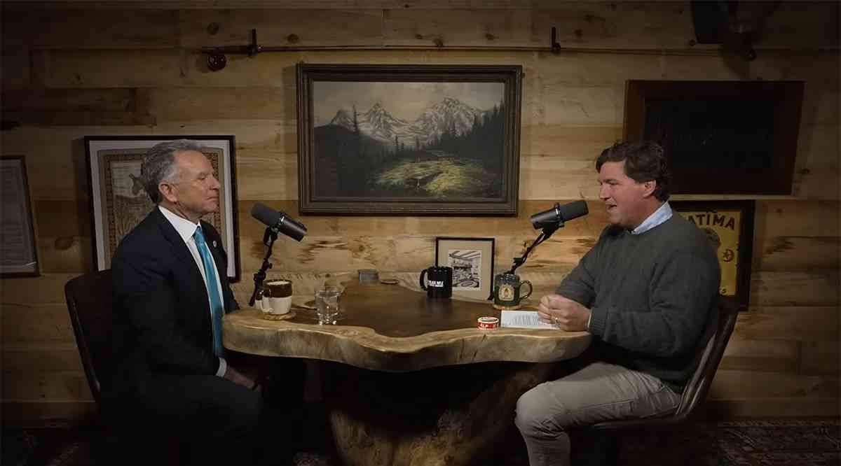 美国中东问题特使威特科夫(左)与塔克·卡尔森对话。视频截图