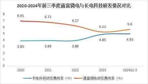 再通过行业对比来看,从2020年到2024年前三季度,通富微电的研发费用率始终维持在6%上下;