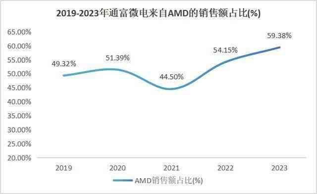 从下图来看,公司来自AMD的销售额占比从2019年的49.32%提升至2023年的近60%,增长迅猛。