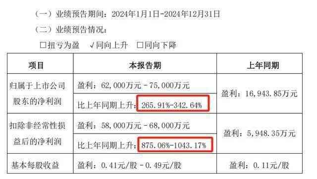 此外,根据业绩预告,通富微电2024年预计获得净利润6.2亿元-7.5亿元,同比增长265.91%-342.64%;获得扣非净利润5.8亿元-6.8亿元,同比增长875.06%-1043.17%。