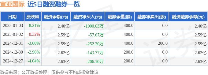 宣亚国际融资融券信息显示,融资方面,当日融资买入1985.57万元,融资偿还3885.6万元,融资净偿还1900.03万元。融券方面,融券卖出0.0股,融券偿还0.0股,融券余量400.0股,融券余额0.58万元。融资融券余额2.4亿元。