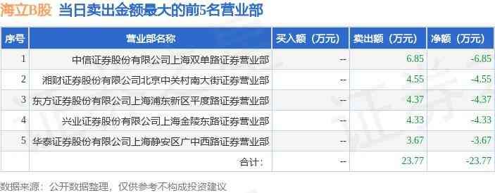 证券之星消息,沪深交易所2024年11月4日公布的交易公开信息显示,海立B股(900910)因有价格涨跌幅限制的日收盘价格涨幅偏离值达到7%的前五只证券登上龙虎榜。此次是近5个交易日内第1次上榜。