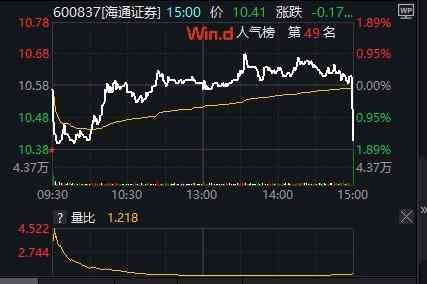 2月5日,蛇年A股首个交易日,处于重组关键期的海通证券结束了在A股长达17年零6个月的上市旅程,其股票代码600837也成为历史。当日收盘,海通证券报收10.41元/股,跌幅1.61%。自2月6日起,海通证券A股股票连续停牌,进入现金选择权行权申报、清算交收阶段,之后将申请终止上市。