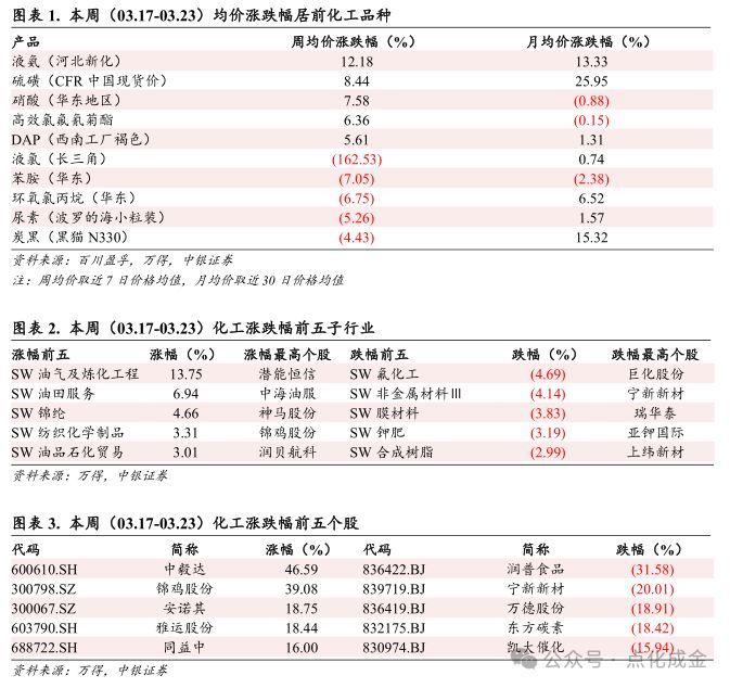 【中银化工】化工行业周报20250323:国际油价上涨,有机硅DMC、VE价格上涨