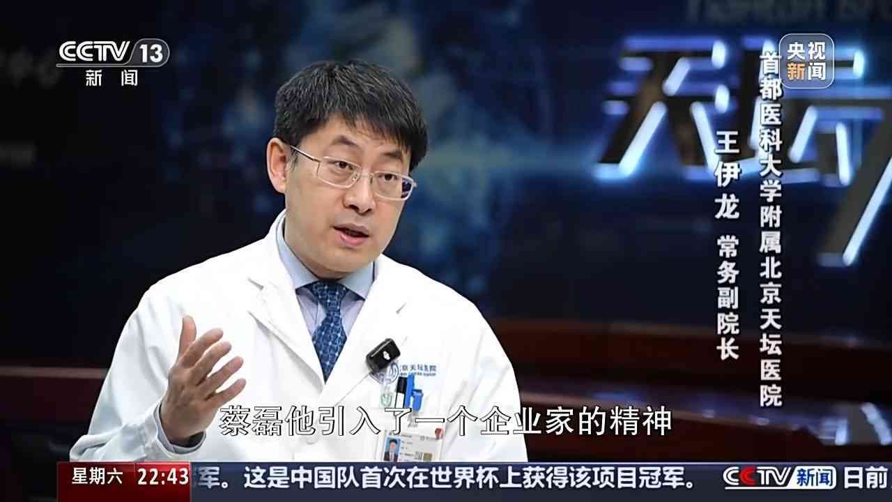 首都医科大学附属北京天坛医院 常务副院长 王伊龙:蔡磊他引入了一个企业家的精神,就是最后要落地,另外他对于互联网在当下的思维,比如说我们原来选病人是守株待兔式的,那他告诉我们可以在互联网做精准画像,可以把患者的群体通过互联网连在一起,这样的话我们可以用小时、用天计算来招募病人,所以这个对于整个疾病研究的范式,全链条是一个良性的生态的打造模式,蔡磊是功不可没的。