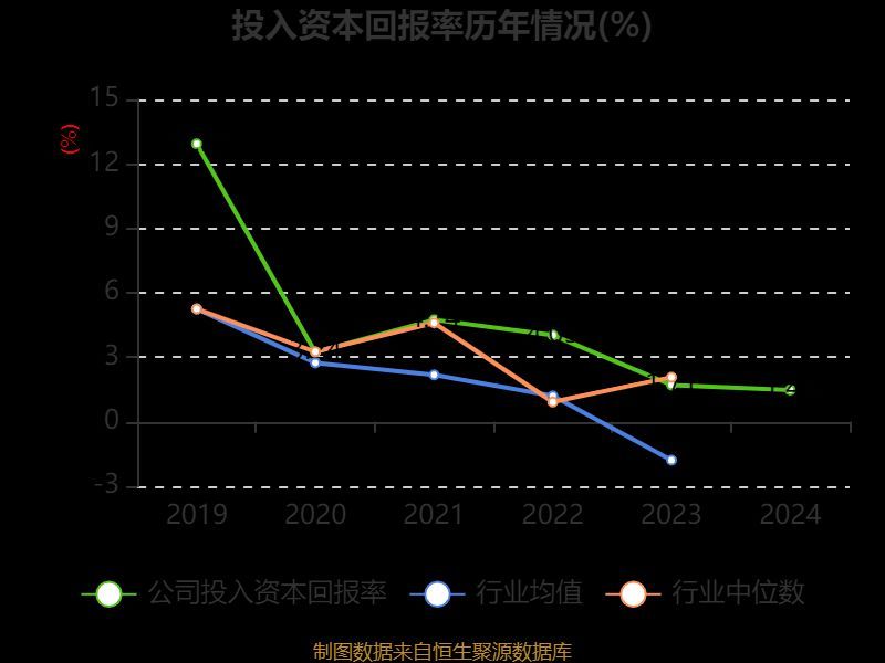数据显示,2024年公司加权平均净资产收益率为0.53%,较上年同期下降0.19个百分点。公司2024年投入资本回报率为1.48%,较上年同期下降0.23个百分点。