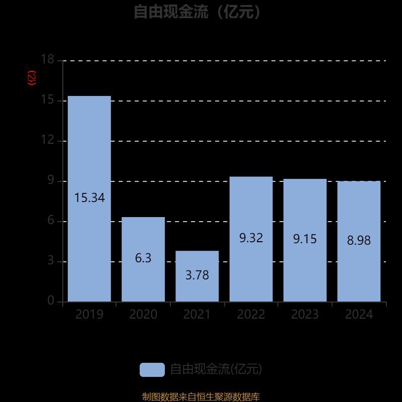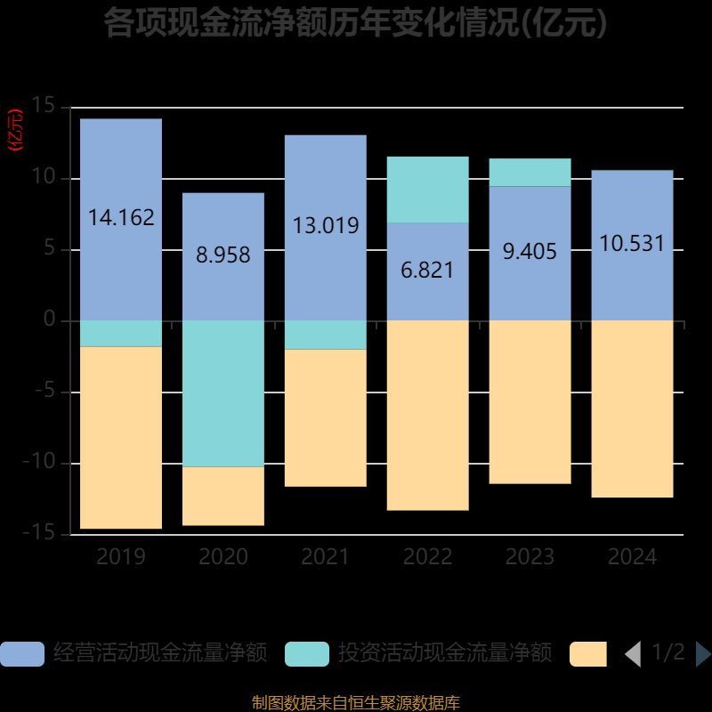 截至2024年,公司经营活动现金流净额为10.53亿元,同比增长11.97%;筹资活动现金流净额-12.44亿元,同比减少9651.34万元;投资活动现金流净额272.19万元,上年同期为1.97亿元。
