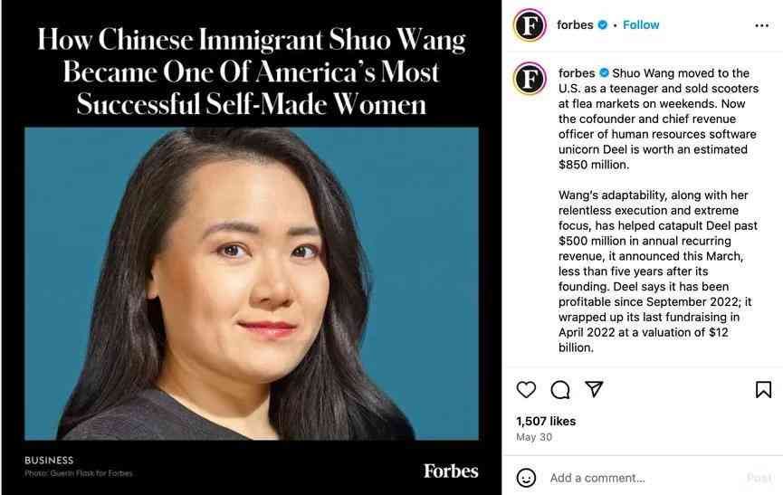 1、福布斯:《这位中国移民在今年成了美国最成功的白手起家女性之一》
