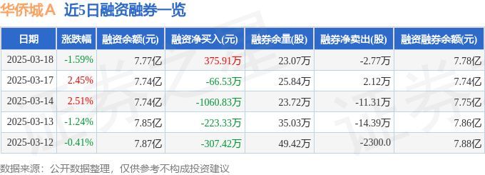 华侨城A融资融券信息显示,融资方面,当日融资买入1707.44万元,融资偿还1331.53万元,融资净买入375.91万元。融券方面,融券卖出0.0股,融券偿还2.77万股,融券余量23.07万股,融券余额56.98万元。融资融券余额7.78亿元。