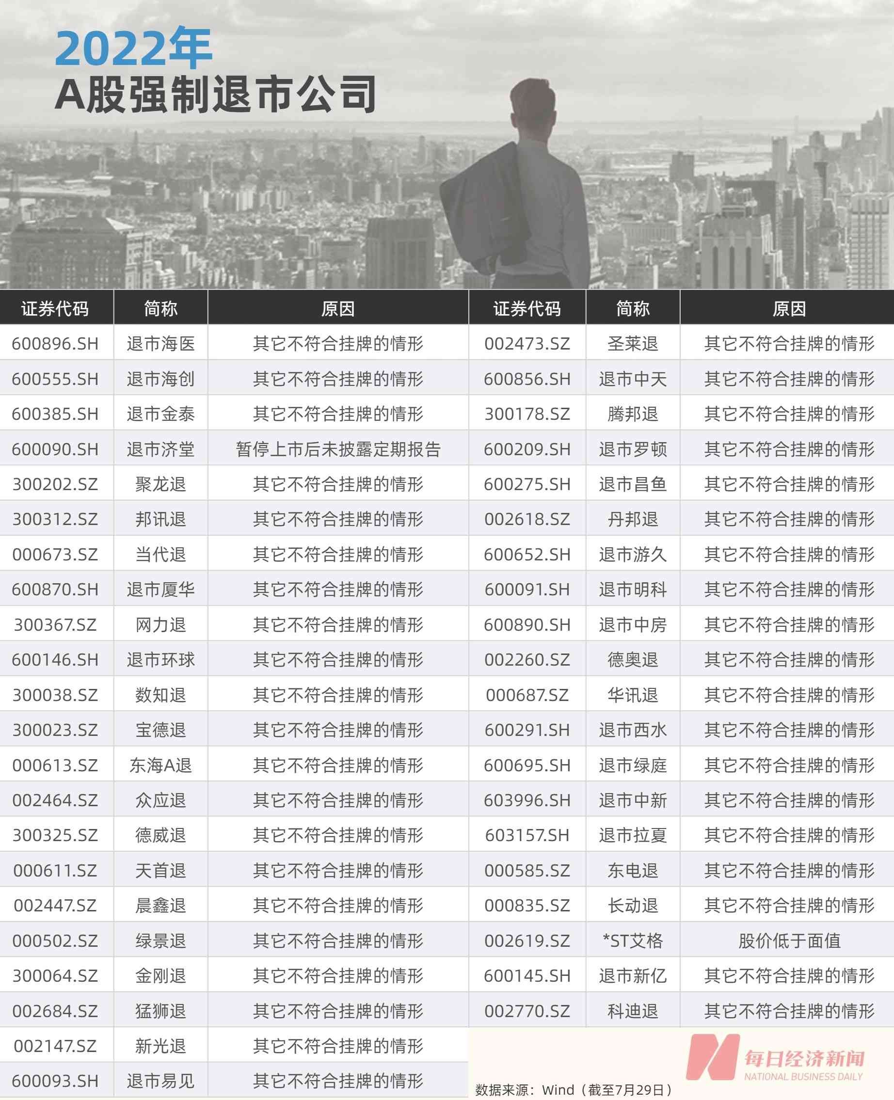 在刚过去不久的6月,有29家公司从A股退市,超过2021年全年退市公司数量——20家(包含3家吸收合并企业),形成今年退市进程的一个高潮。