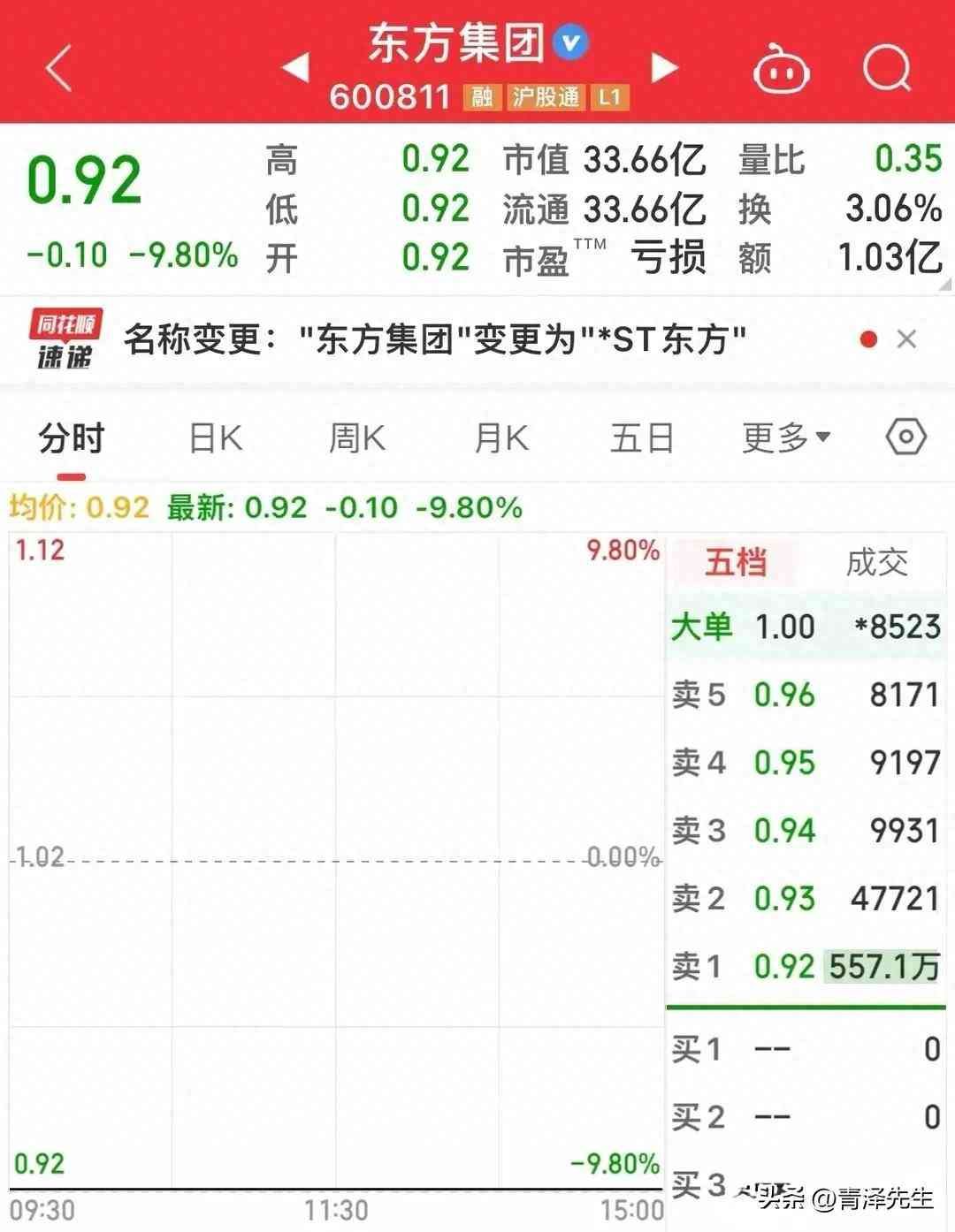 惊雷!东方集团“披星戴帽”成*ST东方 40万浙江散户抄底噩梦