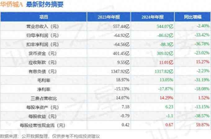 华侨城A(000069)2024年年报简析:净利润减33.42%