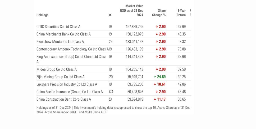 2024年12月,摩根资产管理旗下另一旗舰中国基金JPMorgan Funds - China A-Share Opportunities Fund调仓换股。该基金最新规模为212.17亿元。