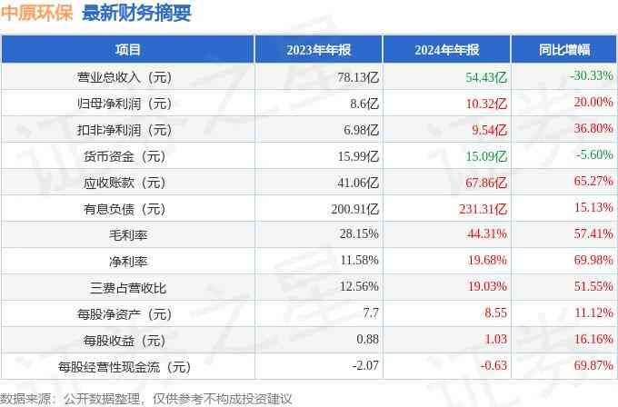 中原环保(000544)2024年年报简析:净利润增20%,三费占比上升明显