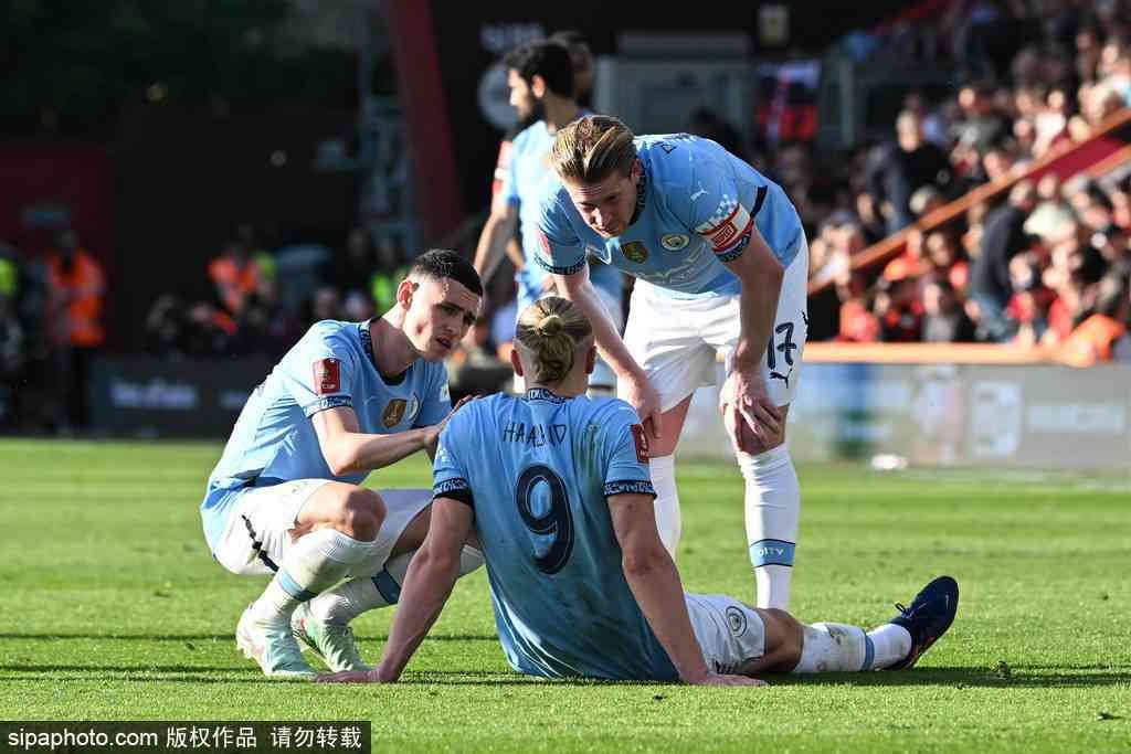 足总杯-哈兰德破门+失点+伤退 曼城2-1伯恩茅斯晋级4强