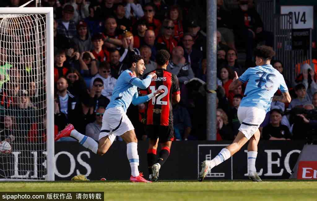 全场比赛结束,曼城客场2-1逆转击败伯恩茅斯,成功晋级本赛季足总杯四强。