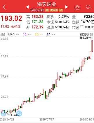 消费龙头海天味业上半年实现营业收入115.9亿元,同比增长14.12%;净利润32.5亿元,同比增长18.27%。今天公司股价再度大涨6.41%,股价在近100个交易日内第30次创历史新高,总市值逼近6000亿元。