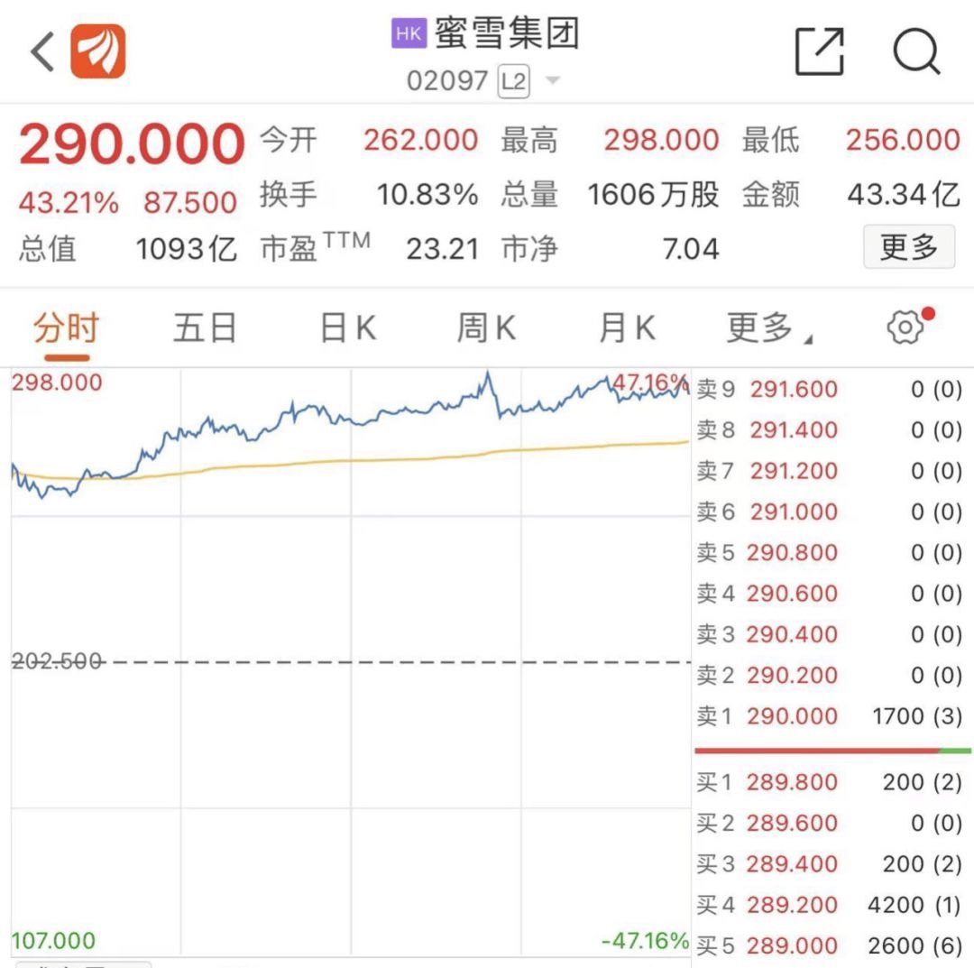 汇生国际资本有限公司总裁 黄立冲也告诉南都记者,最近南下资金比较多,所以香港市场上的“热钱”也比较多,港股市场最近大盘的股价也是上涨的,加上蜜雪冰城本身的盈利情况相对乐观,拉高了大家的期待值,所以比较吸引投资者。
