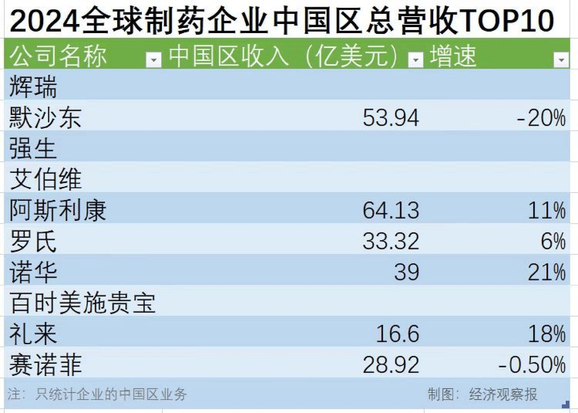 总体来看,2024年,前述跨国药企在中国市场的分化比较显著。比如,阿斯利康、诺华凭借新药获批、成功纳入医保目录等实现了较大增长,而默沙东则因遭遇市场竞争的加剧等业绩下滑。