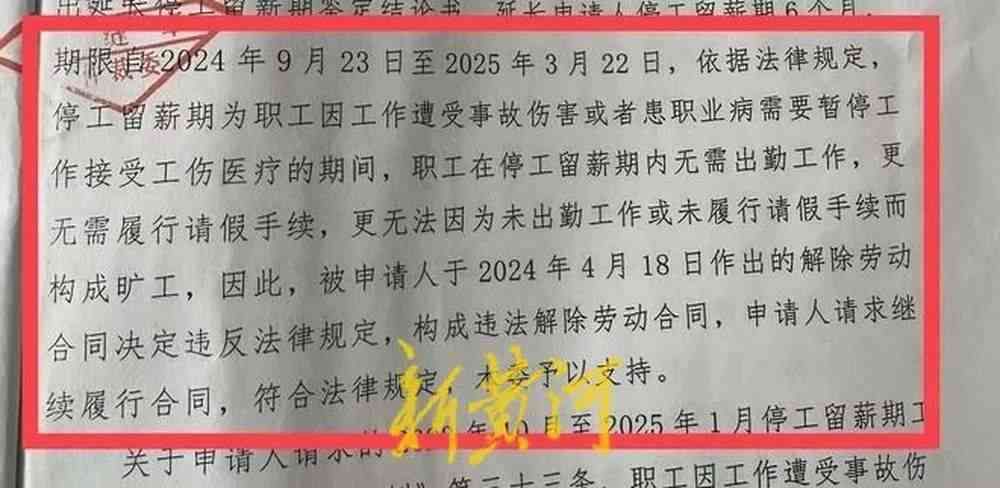 今年3月31日,当事人丽丽(化名)告诉新黄河记者,“我的事情目前有了最新进展, 天津市津南区劳动人事争议仲裁委员会认定公司构成违法解除劳动合同并裁决其继续履行劳动合同,以及支付我的停工留薪期工资等各项费用共计113万元。虽然不清楚公司会不会提起诉讼,但我会维权到底。”
