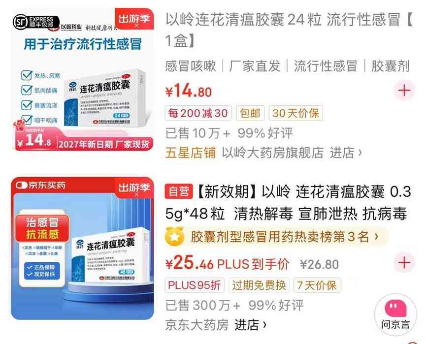 据了解,连花清瘟胶囊常见的10粒装售价大约在20元至30元之间,而24粒装的售价则可能在40元至60元之间。可以发现,如今该药物在网络上售价已经明显低于常规售价。
