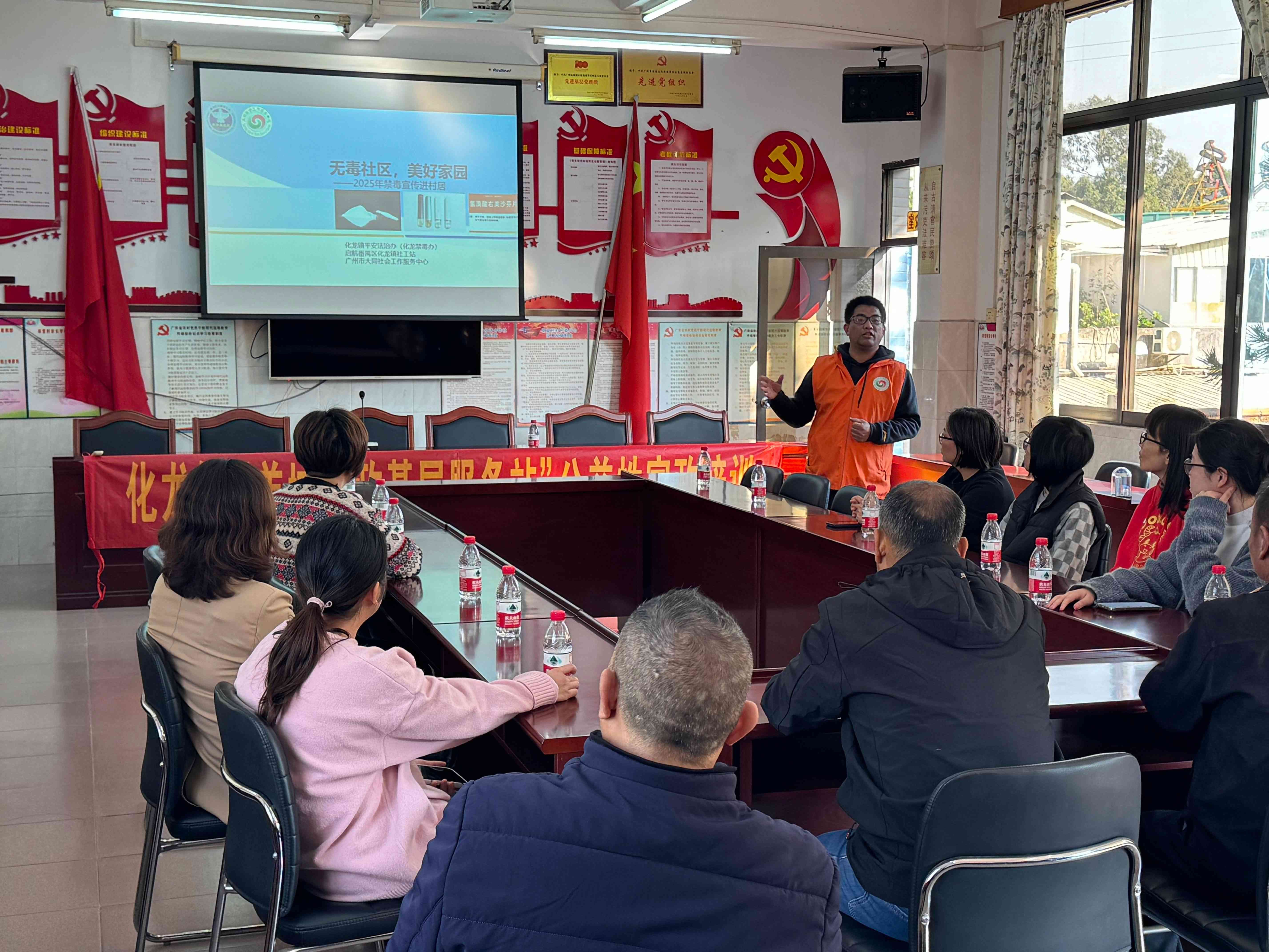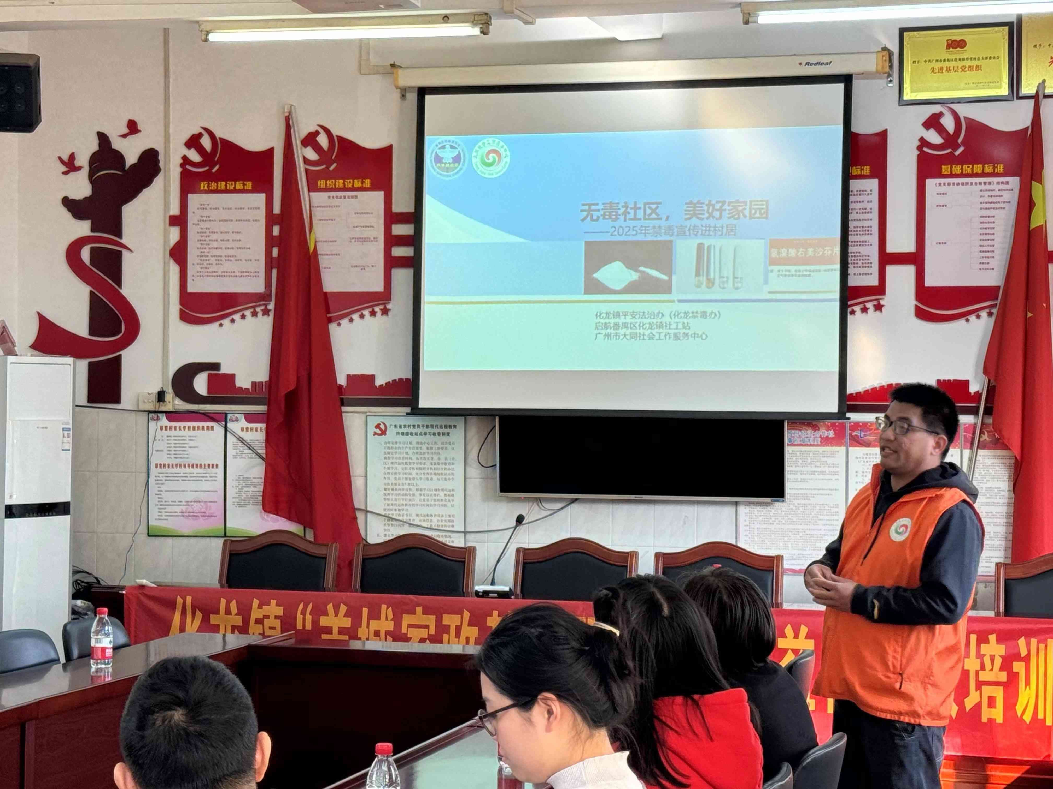 临近春节,为进一步提升辖区内居民的识毒、防毒、拒毒能力,共同营造无毒、健康的生活环境,化龙镇平安法治办、草堂村委会联合广州大同社工,于2025年1月3日下午在草堂村会议室举办“无毒社区,美好家园”禁毒知识讲座。