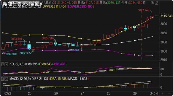支撑方面留意3110和3100两个节点,向下破位依次参考3090和3080两个节点。整体来看,黄金价格趋势偏向看涨,但触及阻力范围该空就空,设好止损就行。周一操作上刘铭诚建议日内先空看回落,等晚间确定底部后再次接多单。