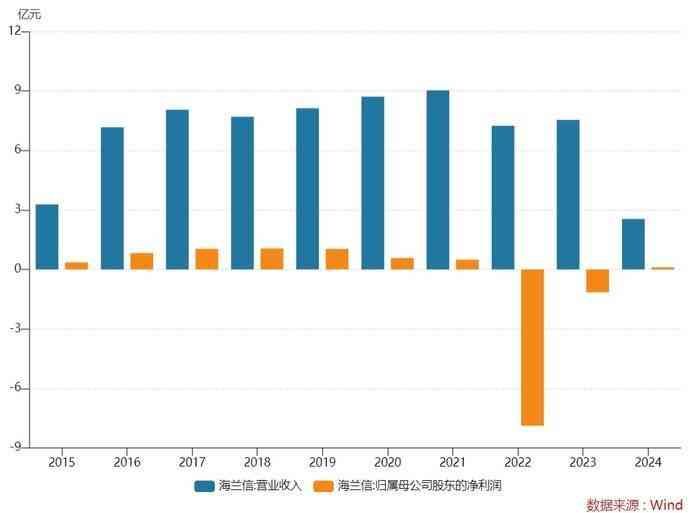 2022年至2024年前三季度,海兰信分别实现营收7.24亿元、7.54亿元、2.54亿元;归母净利润-7.89亿元、-1.16亿元、0.1亿元。
