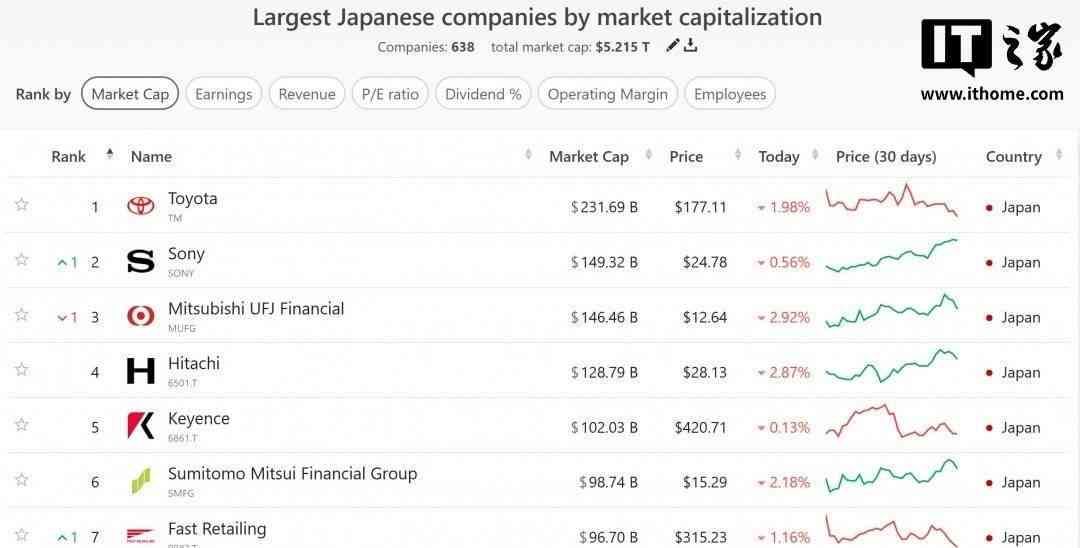 IT之家 2 月 23 日消息,日本企业市值排名中,索尼公司市值已攀升至第二位,仅次于汽车巨头丰田。