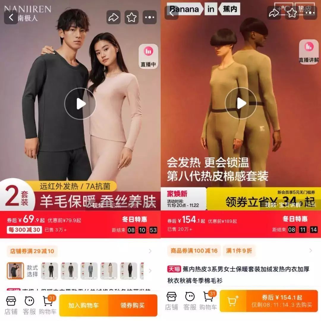 但先不说干倒国外品牌,国内市场的竞争就早已今非昔比。正值初冬,正是消费者选够保暖内衣的时候,强敌林立中南极人只能分其中一杯羹。