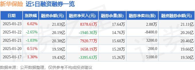 新华保险融资融券信息显示,融资方面,当日融资买入3.66亿元,融资偿还2.82亿元,融资净买入8378.61万元,净买入额两市排名第6。融券方面,融券卖出3.62万股,融券偿还7400.0股,融券余量17.64万股,融券余额857.66万元。融资融券余额21.11亿元。