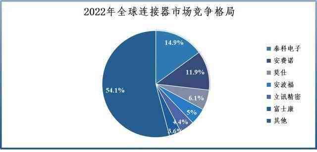在全球连接器市场竞争中,立讯精密市占率为4.4%(2022年),全国第一。