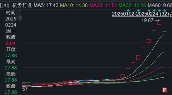 此后,杭齿前进股价继2月11日小幅上涨后,自2月12日开始了涨停板之旅。