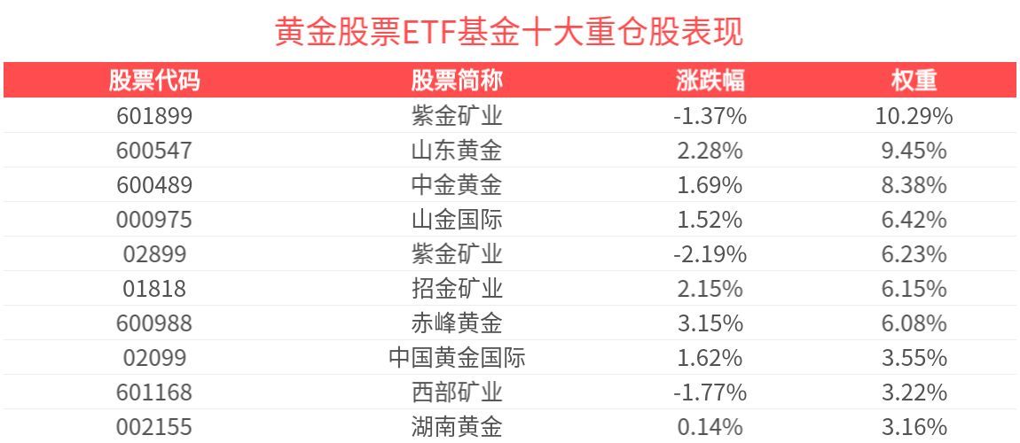 黄金股票ETF基金紧密跟踪中证沪深港黄金产业股票指数,中证沪深港黄金产业股票指数从内地与香港市场中,选取50只市值较大且业务涉及黄金采掘、冶炼、销售的上市公司证券作为指数样本,以反映内地与香港市场中黄金产业上市公司证券的整体表现。