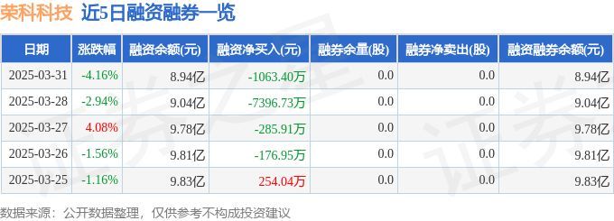 荣科科技融资融券信息显示,融资方面,当日融资买入2240.64万元,融资偿还3304.03万元,融资净偿还1063.4万元。融券方面,融券卖出0.0股,融券偿还0.0股,融券余量0.0股,融券余额0.0万元。融资融券余额8.94亿元。