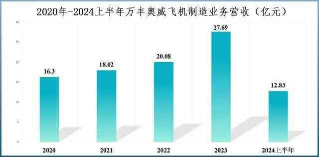 2020年-2023年,公司飞机制造业务营收从16.3亿元持续上升到27.69亿元,2024年上半年公司同样稳定发挥,实现营收12.83亿元。