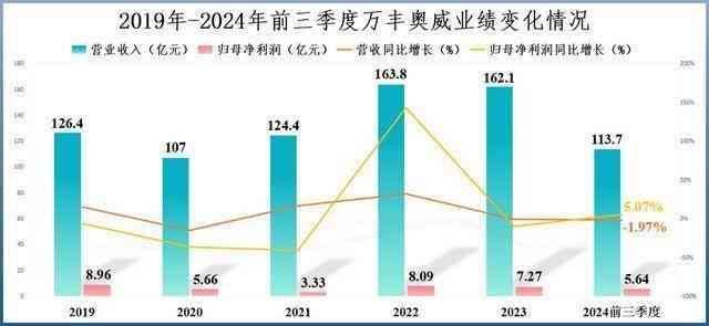 在汽车零部件和飞机制造业务的驱动下,2024年前三季度,万丰奥威实现净利润5.64亿元,同比上升5.07%,虽然营收看起来同比下滑1.97%至113.7亿元。