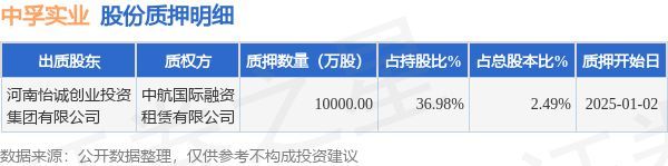 中孚实业(600595)股东河南怡诚创业投资集团有限公司质押10000万股,占总股本2.49%